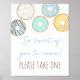 Este adorável sinal de mesa seria uma adição de excelente a uma festa de aniversário temática de rosquinha. Coloque o sinal em um quadro e mostre a mesa a seu favor. A design apresenta minhas rosquinhas desenhadas à mão em cores pastéis com sprinkle confetti.