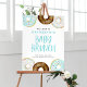 Bem-vindos convidados para o seu evento com este sinal de boas-vindas personalizável para o bebê brunch. Apresenta rosquinhas de cor-de-água azul, branca e chocolate com espirais coloridas. Personalize isso adicionando seus detalhes. Este sinal de travamento de bebê rosquinha está disponível em outras cores.