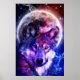 Poster Rosto de Lobo Galáxico Místico com Lua Cheia