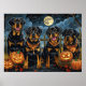 Desencadeie o espírito assustador com este design sinistro de Halloween, apresentando uma matilha de cães sob um céu escuro e iluminado pela lua, cercado por morcegos voando e abóboras brilhantes. Perfeito para quem ama um toque de diversão assustadora com seus amigos peludos!