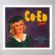 Vintage fruta para plantadores de Orange e Lemon da Califórnia apresentando uma universitária de boné e vestido.