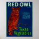 Póster Rótulo do Vegetal da Coruja Vermelha