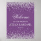Banner / sinal de boas-vindas com elegante brilho prateado em fundo roxo.