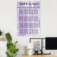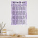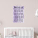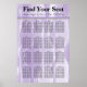 Esta é uma poster elegante com um padrão de seda roxa e pérolas roxas. O texto "Por favor, encontre o seu lugar" é uma inscrição à mão com cores brancas e douradas. Há espaço suficiente para mais de 100 convidados. Você pode excluir as mesas de que não precisa e redimensionar a fonte de cada mesa para ajustar seu lugar no poster. Ou simplesmente mover-se pelo bloco de mesas.