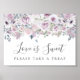 Ajude seus hóspedes a navegar facilmente sua recepção de casamento com este elegante cartaz de bar de sobremesa de casamento DIY. Belas rosas roxas pastéis, lilases e margaridas brancas criam uma bonito borda superior. Amor é doce é escrito em letra de quadril e moda. Muito fácil de personalizar. Seus hóspedes nunca vão adivinhar como este sinal é barato e acessível.