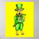 Este Airedale Terrier em um terno Leprechaun com chapéu alto, cachimbo e segurando xamrochas trará um sorriso para qualquer um nesta Rua.