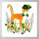Celebrar Ruas. Dia de Patrick com um gato laranja vestindo uma gravata de arco verde, chapéu e parado em folhas verdes. Isso fará você se destacar nos bares e festas.
