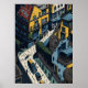 Uma pintura digital espantosa da rua mais crocante do mundo, a Rua Lombard, em São Francisco. A rua é representada em toda a sua glória caótica, com os carros descendo pela colina num círculo aparentemente interminável. A pintura é cheio de cor e vida, e captura a beleza única deste marco icônico.