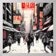 Rua Tóquio - Estilo ciberpunk japonês, pintura aquosa, retrato, vintage, textura rústica, distante, cores desbotadas, arte de linha, estilo de gravação, dinâmica, altamente detalhada, ilustração de arte conceitual.