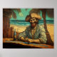 Esta é uma letra de uma canção de Jimmy Buffett, "As rugas só vão onde os sorrisos foram". Esta design foi inspirada por aquela frase, que me lembra de sorrir mais e se preocupar menos. Às vezes isso é duro, mas vale a pena tentar lembrar. Minha mãe faleceu um mês antes da morte do Jimmy e isso foi um golpe duplo para mim. Assim, criar esta e as outras imagens no calendário do Parrothead ajudaram na minha dor. Espero que goste de todos.