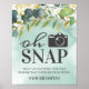 Sinal de festa russo verde com uma aquarela esmaecida lavada em fundo, folhas botânicas de eucalipto, pedaços de folha de ouro falsa, o texto "oh snap", mensagem e hashtag.
