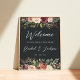 Bem-vindos convidados para o seu casamento com nosso poster Rustic Bloom, com culturas botânicas de cor aquática e flores em cores ricas do outono, com "bem-vindos a nossa felicidade para sempre", seus nomes, e data de casamento em uma mistura de serifas e tipos de caligrafia tradicionais.