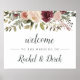Bem-vindos convidados para o seu casamento com nosso poster Rustic Bloom, com culturas botânicas de cor aquática e flores em cores ricas do outono, com "bem-vindos a nossa felicidade para sempre", seus nomes, e data de casamento em uma mistura de serifas e tipos de caligrafia tradicionais. Orientação vertical também disponível na nossa coleção Rustic Bloom.