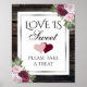 O amor floral rústico elegante é doce, por favor, pegue um cartaz de casamento em cor rosa e prateada. Itens correspondentes disponíveis.