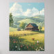 Poster Rustic Countryside Cabin with Wildflowers