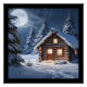 Paisagem à magia silenciosa do inverno com esta espantosa cabana rústica debaixo de um céu luar, enfiada na neve coberta de vergreens. Perfeito para vibrações acolhedoras e amantes da natureza e seria excelente para qualquer decoração de campo ou de amantes da natureza.