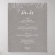 Este inverno rústico | O cardápio de bebidas de cinza é perfeito para o seu casamento de boho de dezembro. Projetado com floral e pinecones de feriado simples em fundo de coroa de cinza. Está certo de completar o seu elegante casamento de Natal minimalista. Sinta-se livre para mantê-lo como está ou escolha personalizá-lo com suas fotos! Você também pode procurar outros itens nesta coleção para realmente juntar todo o seu casamento no inverno!