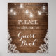Póster Rústico Sinal de Lace das Luzes de Madeira Guestbo