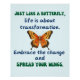 Sabedoria da borboleta: "Assim como uma borboleta, a vida é sobre transformação. Abrace a mudança e espalhe suas asas." Esta citação afirma que a vida é cheio de desafios e reveses. Assim como uma borboleta que supera obstáculos para chegar ao seu destino, você pode superar a adversidade e emergir mais forte.