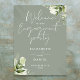 Este elegante sinal de boas-vindas da festa de noivado floral botânica verde-sábio pode ser personalizado com suas informações em tipografia quic. Projetado por Thisnotme©