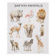 Discover a selection of safari animals with this beautifully illustrated poster! Perfect for classrooms, home-schooling, or decorating a child's room, this informative poster features a variety of wild animals in detailed illustrations and their names, including flamingo, lion, giraffe and more. A fun and engaging way to learn about the fascinating safari. Whether you're an educator, a parent, or an animal lover, this is a must-have addition to your space.