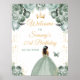 Este elegante e glamouroso sinal de boas-vindas festas de aniversário apresenta uma bela princesa com pele escura num vestido verde sábio. O texto combina o script manuscrito e as fontes sans serif modernas para um aspecto elegante e sofisticado. Os arranjos florais, borboletas e confete de ouro criam a mistura perfeita de rústicos e quicos. Gráficos por www.etsy.com/uk/shop/SunflowerDayLove
