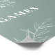 Os sinais de jogos são caracterizados por um estilo 'boho' com trabalho de arte floral e cores verdes sábias. Impresso em estoques de cartolina de alta qualidade, eles certamente impressionarão seus convidados e darão o tom para seu dia especial. Confira nossa coleção: https://www.zazzle.com/collections/floral_sage_green_wedding-119898373740526358