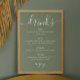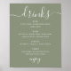 Poster de menu minimalista para bar de álcool e bebidas não alcoólicas em salsicha verde pastel, verde-claro para o casamento de verão na floresta. Adequado para aniversário, aniversário e qualquer outra festa. Entre em contato comigo se precisar de itens adicionais.