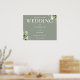 Este elegante sinal de boas-vindas ao casamento verde de sábio, com tipografia floral verde, pode ser personalizado com as suas informações em letra chic. Projetado por Thisnotme©