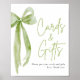 Sage Watercolor Green Arco Cards and Gifts Sign Aprimore seu chá de panela ou evento especial com nosso elegante sinal de "Watercolor Sage Green Arco Cards and Gifts" (Placas e Presentes Verdes do Sage em Aquarela). Apresentando um delicado arco verde de aquarela, este sinal adiciona um toque de sofisticação à sua mesa de presente. Perfeito para guiar os hóspedes para deixar suas cartas e presentes, ele se mistura perfeitamente com qualquer estilo de decoração. Impresso em estoque de cartão de alta qualidade, o sinal é durável e bonito, e fazer-o como uma adição encantadora à sua celebração.