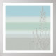 Cor macia de azul-céu, esticada e verde-marinho com erva orgânica alta e elegante no primeiro plano. Impressão contemporâneo para sua sala, quarto ou banho.