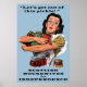 A minha adorável e retocada poster da 2ª Guerra Mundial, kitsch, é para as mulheres que apoiam a independência escocesa. Ele apresenta o famoso "Claro que posso aperfeiçoar a dona de casa americana fazendo sua parte em casa para o esforço da guerra enquanto ela pega cada vegetal e fruta à vista". Criada em 1944 pelo artista Dick Williams para o Departamento de Administração da Guerra da Agricultura dos Estados Unidos, a pintura mostra uma dona de casa azul num avental frilamente decorado com flores para reforçar seu status de dona de casa. Ela segura três grandes potes de verduras em seus braços, com três potes mais saborosos por baixo. Beterraba, verde, tomate, ela enlatou todos! Eu substituí a legenda original dela 'Claro que eu posso!' com 'Vamos sair desse picle!' Por baixo adicionei o slogan 'Escocesas para Independência'. Eu também dei a ela uma tatuagem do símbolo feminista internacional em um padrão tartano, visto em seu braço esquerdo.