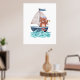 Sailor Bear Boat Waves Nautical Summer Boy Nursery Poster