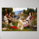 Waterhouse fills the composition with roses, greenery, and warm stone architecture, balancing intimacy with grandeur. The rich reds, soft whites, and deep greens create a gentle rhythm across the canvas, while distant water and sky add cool, airy space behind the figures. The result feels like a moment suspended between devotion and daydream, where music becomes a quiet form of prayer and beauty is treated with the tenderness of a legend.