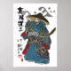 Ukiyo-e de Saito Dosan (斎 藤 道 三), de Utagawa Kuniyoshi, mestre no estilo ukiyo-e dos impressões japoneses de madeira, restaurado pela Arte Takeda, mostrando que Dosan espionava Oda Nobunga a distância, para determinar se Nobunaga fará um genro aceitável. Atrás está o clã de Saito, com caligrafia kanji de Saito Dosan, assinatura e selo de Kuniyoshi.