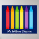Uma bela Semana de Apreciação de Professores ou presente de fim de ano para um jardim de infância dar a seu professor primário. Costume feito com um nome sob o arco-íris fofo de lápis. Um adorável poster azul para um professor de pré-escola colocar em sua sala de aula.