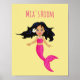 Perfeito para a decoração do quarto de uma criança ou de uma jovem menina. Uma imagem colorida e vibrante de uma ilustração mítica da criatura de uma sereia rosa contra um fundo amarelo-claro personalizável. Esta criatura mística serviria ao quarto de uma criança. O texto personalizável pode ser alterado para o nome do seu filho.