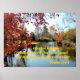 Bíblia Verso de Ação de Graças e culto: "Oh, dê obrigados ao Senhor; para Ele é bom: para Seu compaixão, resiste para sempre. Salmo 136:1" Cena é outono na água, com lindas folhas de outono penduradas sobre a borda da água.