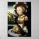 Salomé "a Filha de Herodias, vestido e joias lindos com chapéu vermelho branco e paisagem de lago em fundo pelo pintor alemão Lucas Cranach, o Velho 1530.