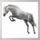 Pintura de arte original de um cavalo de cinza aplicado saltando por uma artista e designer equina Carolyn McFann impressa em um impressão de poster de qualidade para amantes de cavalos.