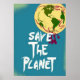 Arte digital com texto branco" salve o planeta" e uma imagem de um planeta poster.