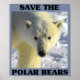 Um fecho de um urso polar com as palavras Salvar os Ursos Polares ao seu redor. Sem proteção, os ursos polares podem não sobreviver até ao século XXI. Coloque-os na lista protegida.