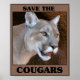 Um close de um charuto com as palavras Salvar os Cougars ao seu redor.