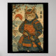Poster Samurai Cat Warrior Japonês Ukiyo-e Trabalho de ar
