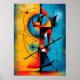Uma ousada obra de arte abstrata que retrata um samurai através de formas geométricas, linhas orbitais e contrastes de cores vivas. A composição combina abstração moderna com movimento cósmico, criando um design de guerreiro poderoso e expressivo para interiores contemporâneos.