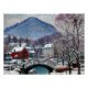 "Sandvika" é uma pintura evocativa que captura a beleza serena da aldeia norueguesa de Sandvika. Esse trabalho exemplifica a capacidade de representar paisagens naturais com um toque impressionista característico. A pintura apresenta uma pacífica cena ribeirinha, com uma pequena vila aninhada entre colinas e árvores cobertas de neve. O rio, provavelmente Sandvikselva, é central à composição, refletindo o céu e a paisagem ao redor. O uso de uma legal paleta de cores, dominada por brancos, azuis e cinzentos, transmite efetivamente a nítida e fria atmosfera de um dia de inverno. As pinceladas estão soltas e fluidas, capturando o jogo de luz na neve e na água. Os prédios da vila são rendidos com contornos suaves e difusos, se misturando harmoniosamente na paisagem ao redor. O efeito geral é de tranquilidade e beleza tranquila, típica de uma habilidade de transformar cenas do dia a dia em obras de arte cativantes. "Sandvika" é um testemunho da versatilidade e profunda apreciação das variadas paisagens encontradas na Noruega. Ela reflete o domínio em capturar os efeitos transitórios da luz e do tempo, e a habilidade em transmitir o humor sereno e contemplativo de uma paisagem de inverno.