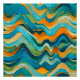 "Sanlúcar" Blue Orange Waves. Uma Mistura Colorida De Abstrato. Camadas de blues, de verde e laranja, formando ondas que lembram um leito marinho multicolorido com areia, mar e algas marinhas em harmonia.