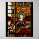 Detalhes incríveis nessa imagem fotográfica de uma janela de vidro manchado com a Santo Cecilia - o santo protetor da música, com órgão de pipe e cherub/criança segurando harpa.