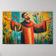 Este poster retrata o Santo Francisco de Assis de braços abertos, cercado por flores e aves. Conhecido pelo seu amor pela natureza e devoção a Deus, Francisco nos convida a ver a criação como um presente. Uma imagem brilhante e inspiradora para casas, igrejas ou salas de aula, encoraja a fé, a alegria e o cuidado com o mundo à nossa volta.