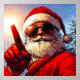 Papai Noel bravo e brincalhão em óculos de sol, irradiando luz divina. Este conceito único combina alegria de férias com um toque de frieza celestial.